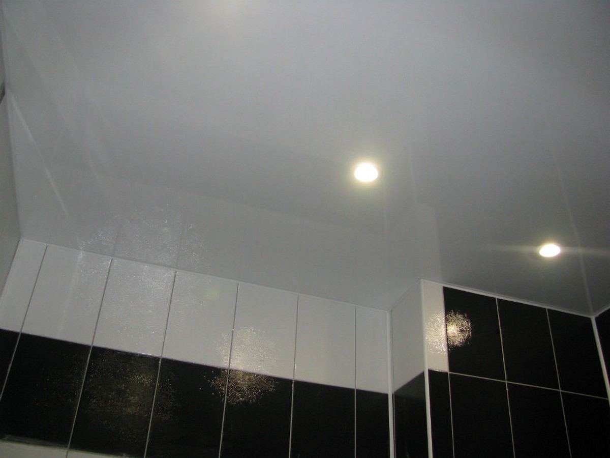 ПВХ материалы водостойкие. Более того натяжной потолок останавливает жидкость при затоплении сверху. Перед тем как лопнуть, один квадратный метр пленки выдерживает до 100 л воды. При помощи прокола жидкость аккуратно сливается в канализацию, что предотвращает затопление собственной ванны и соседей снизу.