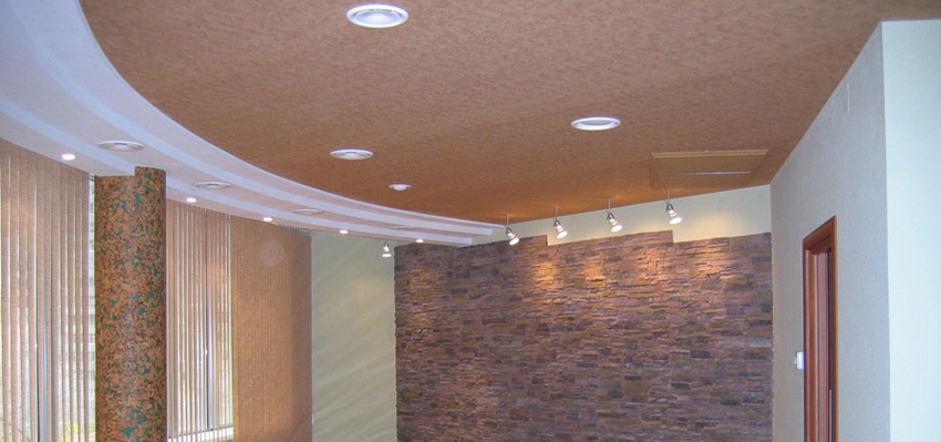 нет возможности использовать точечные светильники большой мощности, поэтому, прежде чем установить потолок, нужно тщательно продумать, как расположить световые приборы.