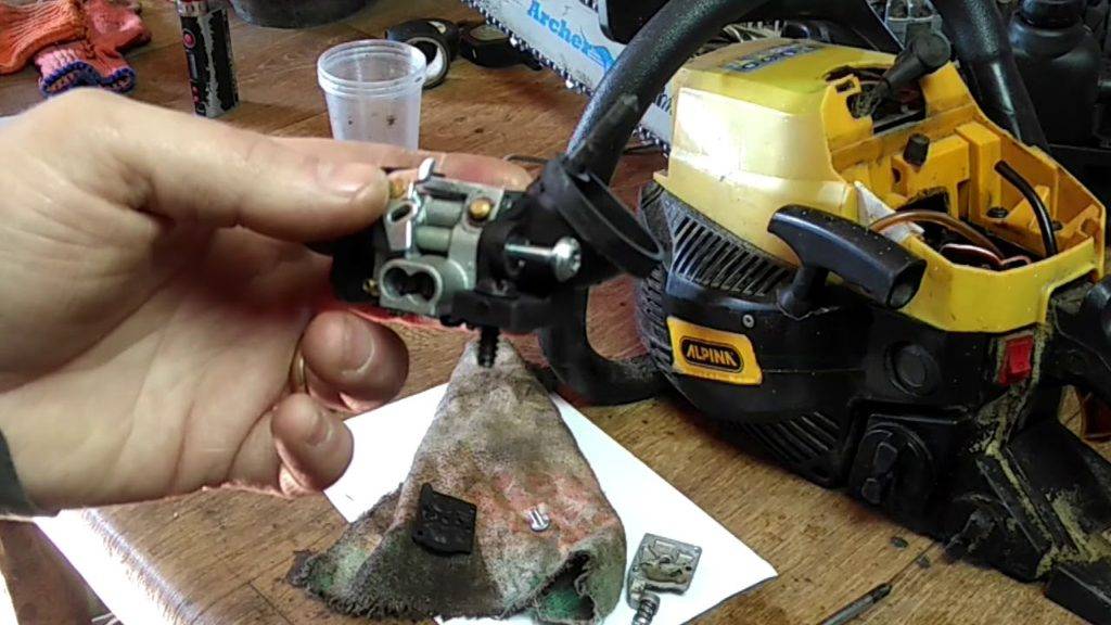 Карбюратор — это важный и самый сложный элемент бензопилы. Если все выше проделанные действия не помогли получить положительный результат, то это говорит о том, что неисправен карбюратор. Главная неисправность карбюратора заключается в засорении его каналов и жиклеров. Реже из строя выходят мембраны и прочие элементы. В любом случае, понадобится разобрать карбюратор бензопилы, произвести его очистку и замену вышедших из строя деталей.