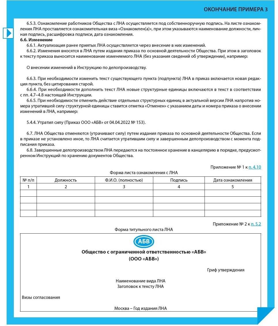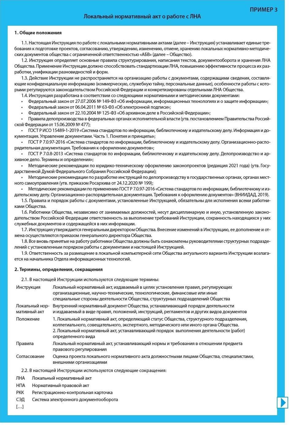 Предлагаем вам пример инструкции по работе с локальными нормативными актами (Пример 3).