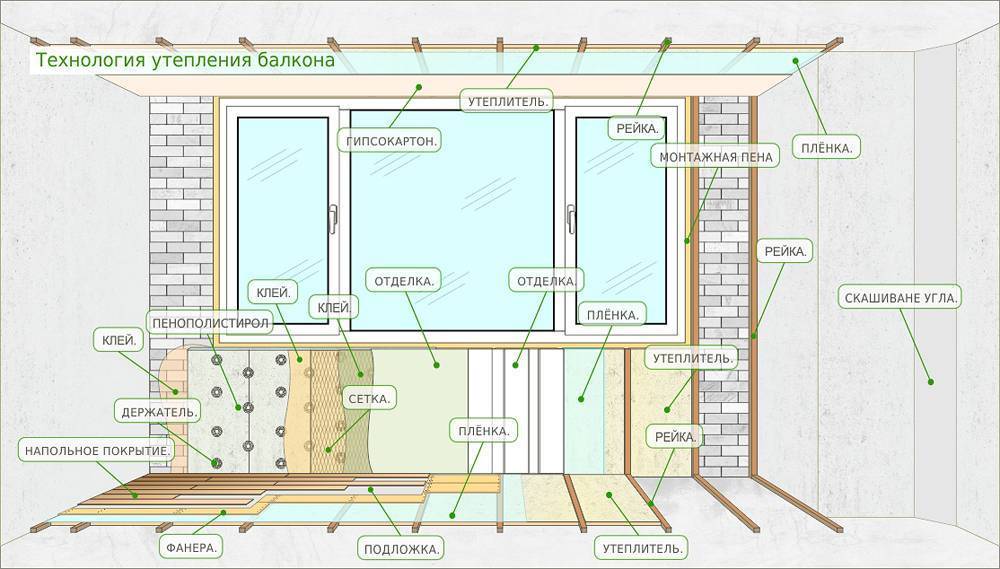 - утепление стены по всему периметру балкона, а также пола и потолка с помощью любого теплоизоляционного материала;