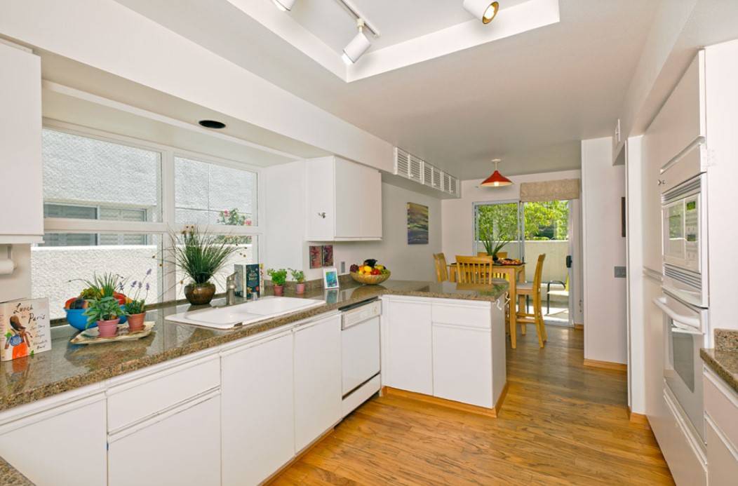 Также подоконную тумбу можно расширить, углубив ее в кухню, тем самым полностью изолировав зону готовки от обеденной зоны.