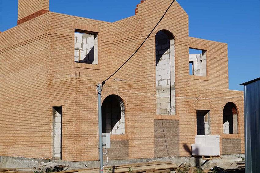 Рассмотрим последовательность действий при отделке дома кирпичом.