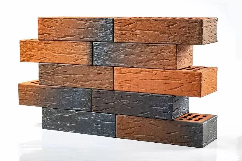 Наиболее технологически развитые предприятия научились добиваться на поверхности не только однотонного окраса, но и разноцветных разводов причудливой формы. Такой кирпич применяется только на самых ответственных зданиях и сооружениях. Внешние поверхности могут быть гладкими или текстурными.