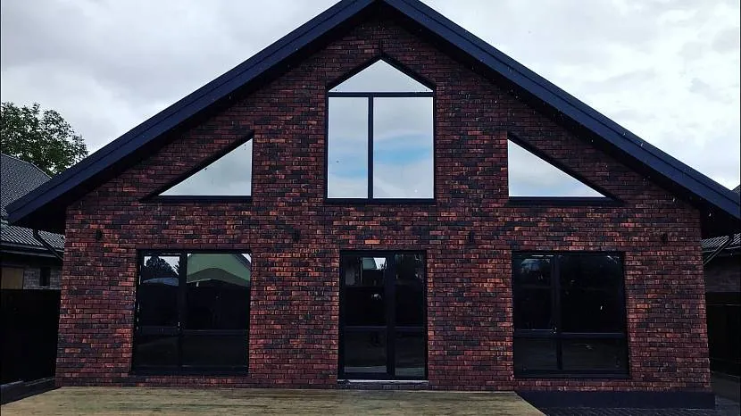 Отделка основных стен кирпичной кладкой в панорамном двухуровневом доме