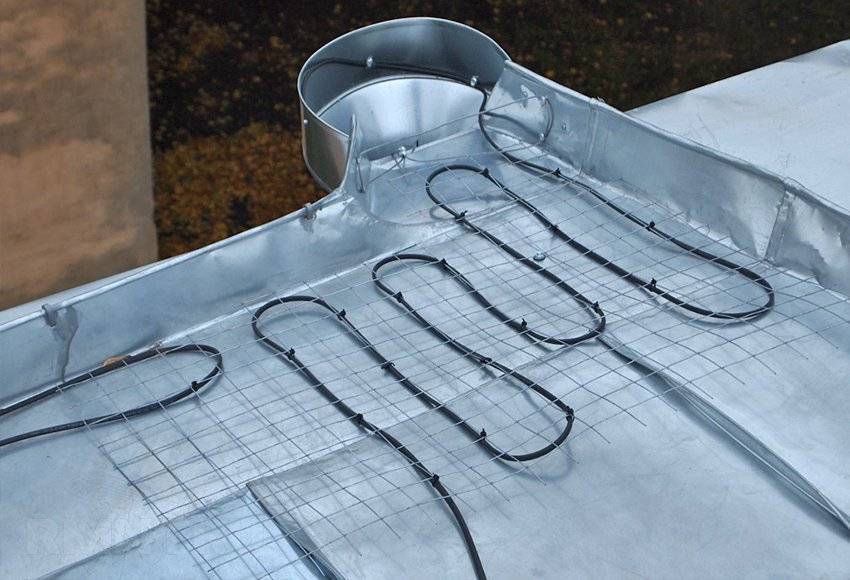 Вокруг воронок предусматривают метровую (1 м 2 ) зону обогрева. Мансардные окна обкладывают кабелем по периметру и по пути оттока воды.