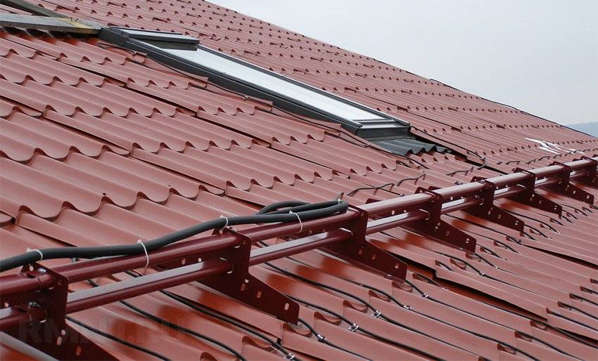 - Если нагревательный кабель установлен на металлической крыше, водостоке