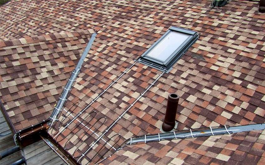 Вокруг воронок предусматривают метровую (1 м 2 ) зону обогрева. Мансардные окна обкладывают кабелем по периметру и по пути оттока воды.