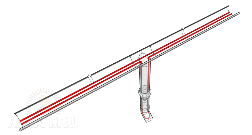 - Вертикальный участок системы будет иметь длину, равную общей длине водостоков. Одной линии кабеля должно хватить для решения большинства проблем.