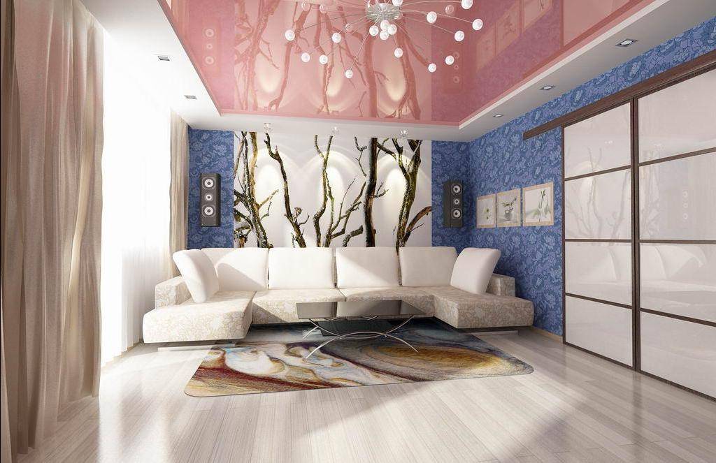 Варианты комбинирования обоев в зале
