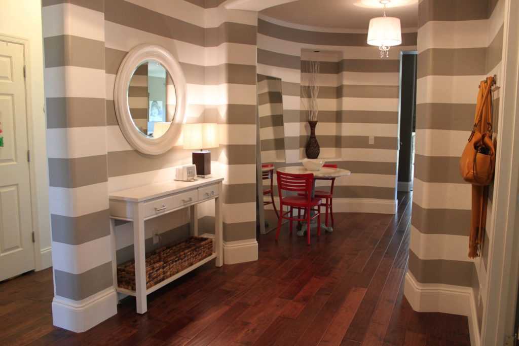 Переменное чередование полос в интерьере прихожей.