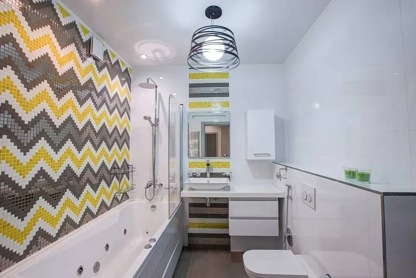 Просторный санузел с полосатыми стенамиИсточник svp.one