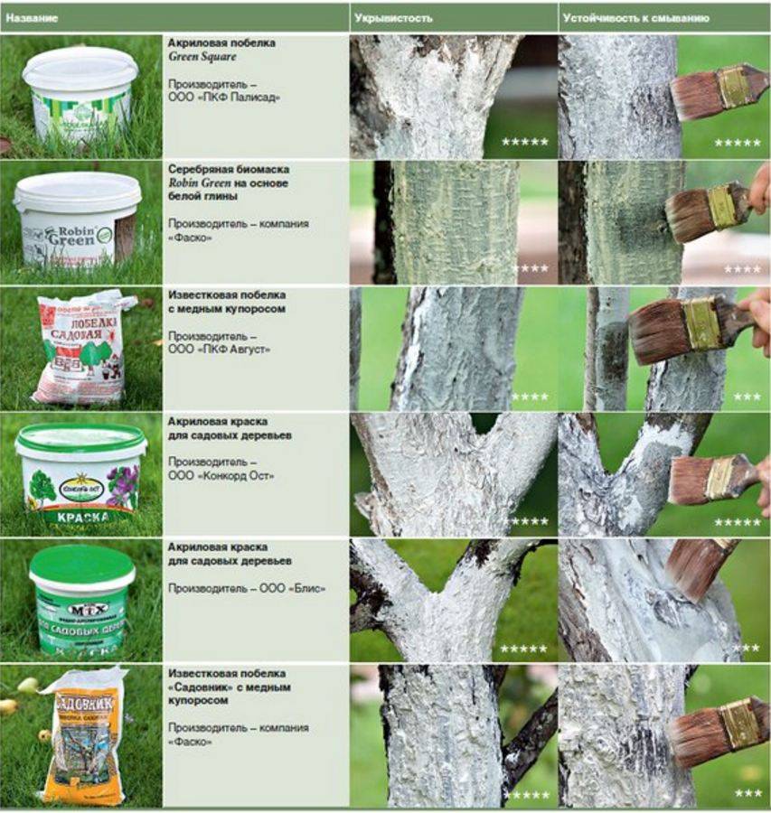 Современная промышленность предлагает широкий спектр побелок для деревьев. Но можно их также готовить и своими руками. При этом в используемый при окрашивании состав должны входить следующие компоненты: