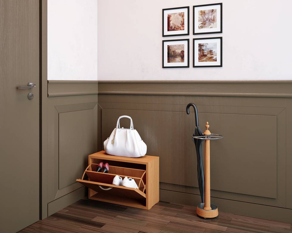 Обувницы из яблони, вишни, дуба, кедра, ольхи выглядят дорого и презентабельно, особенно если украшены ажурной резьбой. Изделия из древесного массива являются классикой, они хороши для интерьеров с экологическим уклоном. Несмотря на то что древесину обрабатывают противогрибковыми пропитками и покрывают влагостойкими лакокрасочными составами, обувь в подобную конструкцию лучше ставить просушенной.