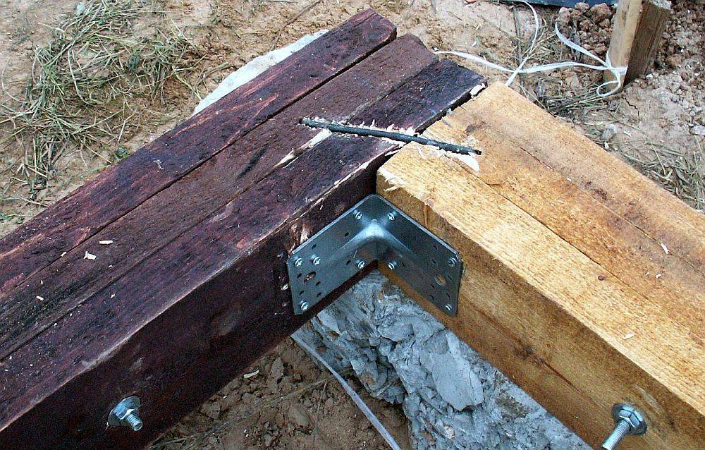 К сваям бруски крепят при помощи болтов диаметром 12 мм и более. Также в качестве крепежного элемента можно использовать шпильки аналогичного сечения. Все крепежные компоненты необходимо обработать антикоррозийным средством.