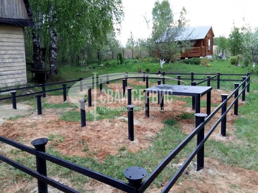 - Устанавливают столбы свай на одинаковой высоте и обрабатывают металлические элементы обвязки антикоррозийным средством.