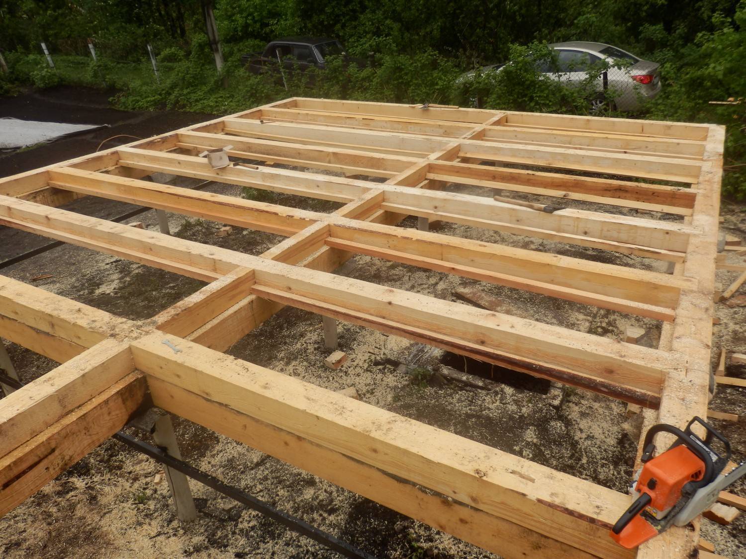 Дополнительные диагональные и поперечные балки, которые называют нижней обвязкой, служат для равномерного распределения нагрузки и устойчивости опор.