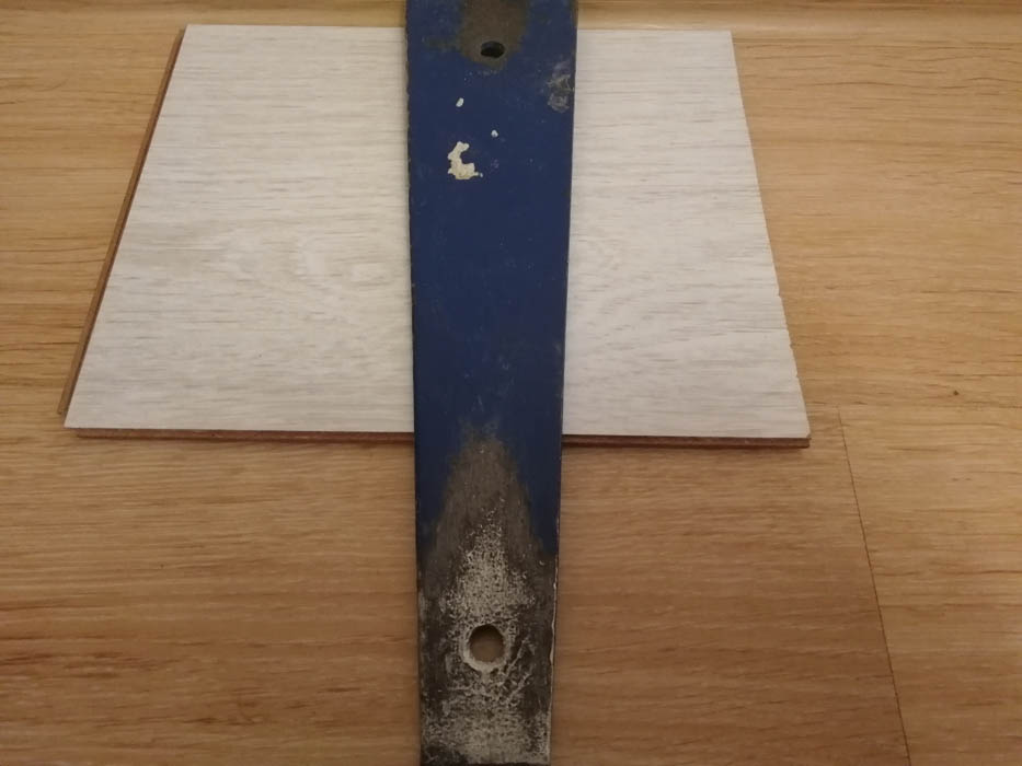 Ее так же можно приобрести в наборе для укладки ламината. Железная скоба или кочерга нужна при более плотной подгонке панелей друг к другу, если недостаточно свободного места для использования подбивочного бруса. Это места возле стеновых перегородок, под батареей.