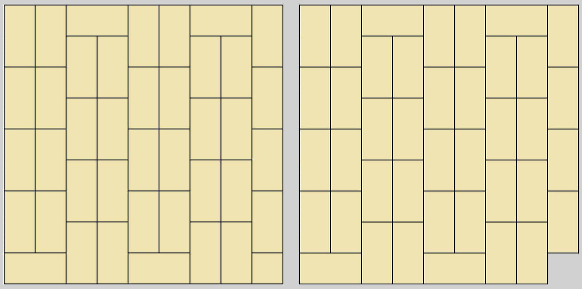 Я не стал пилить кирпич, а оставил это место пустым, как показано в правой части рисунка. Отсутствие одного квадратика меня не смутило. Это было не критично, т.к. площадку вокруг я собирался выкладывать тротуарной плиткой. Позднее, плитка заняла место отсутствующей половинки, это видно на фотографии в начале статьи.