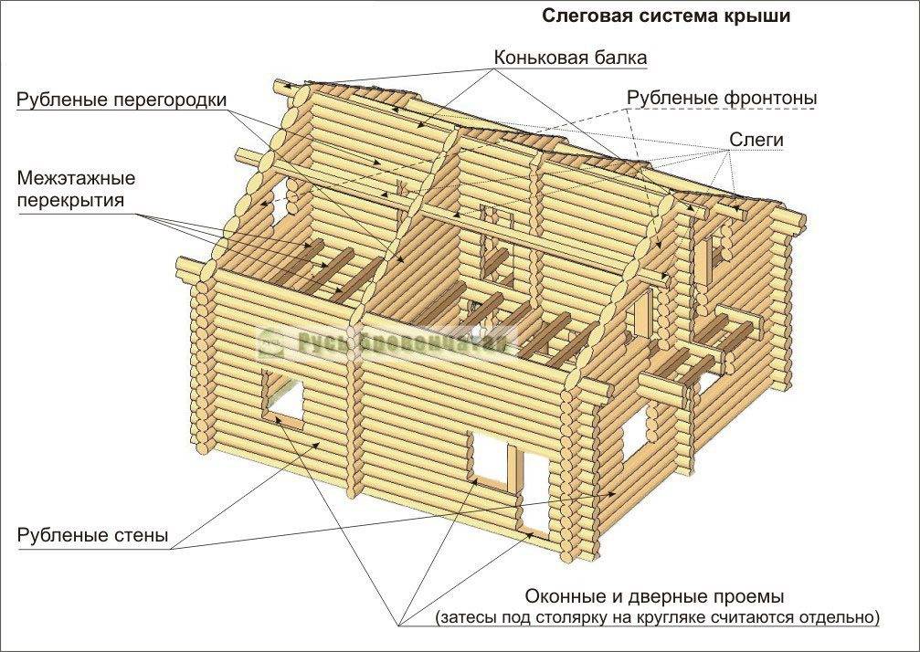 Технология устройства крыши на сруб практически не отличается от той, которая выполняется при монтаже дома из кирпича своими руками, но все же, есть некоторые особенности. Так, здесь стропильная система крепится на скользящие опоры из металла, которые сохраняют заданный уклон крыши даже тогда, когда сруб дает усадку. Стропила монтируются на расстоянии 50 см друг от друга.