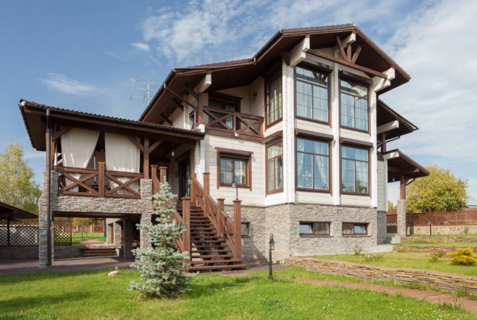 При возведении домов частного, либо дачного типа нередко используются скатные крыши. Они состоят из наклонной поверхности, их угол наклона выше десяти градусов. Конструкция может быть совмещенной или раздельной. В раздельной крыше предусмотрено наличие нежилого помещения — чердака. В совмещенном варианте для перекрытия верхнего этажа используются несущие элементы.