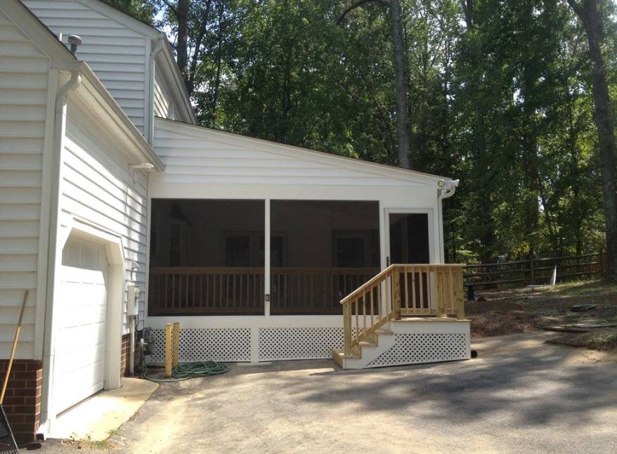 В случае, когда не предусмотрен дом с пристройкой под одной крышей, необходимо, чтобы крыша дома выступала над пристройкой не менее, чем на 5 сантиметров. Нужно тщательно продумать, как привязать конструкцию к стене, иначе внутрь будет попадать дождевая вода или снег.