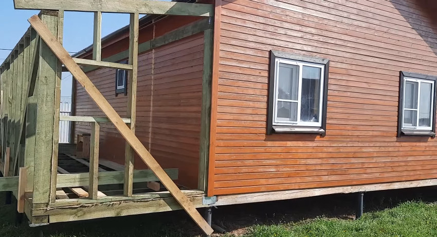 Снаружи и внутри утеплитель обшивают пароизоляционной пленкой, чтобы внутри не собиралась влага и не портила материал. После этого делают декоративную отделку. Изнутри пристройки каркасные стены можно обшить деревом, гипсокартоном, ДСП, а снаружи – сайдингом, блок-хаусом, прочими декоративными материалами.