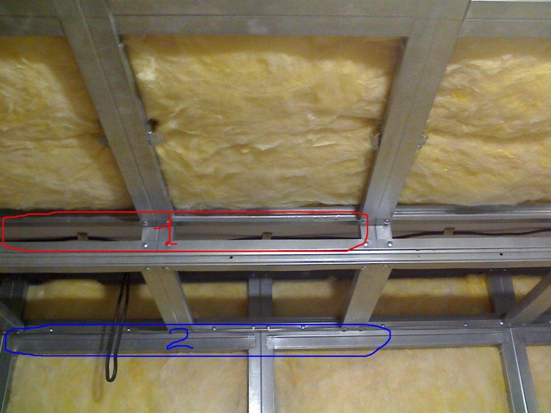 Совет. Если у вас идеально ровный потолок, то можно монтировать второй уровень каркаса прямо на него. Так вы сэкономите пространство.