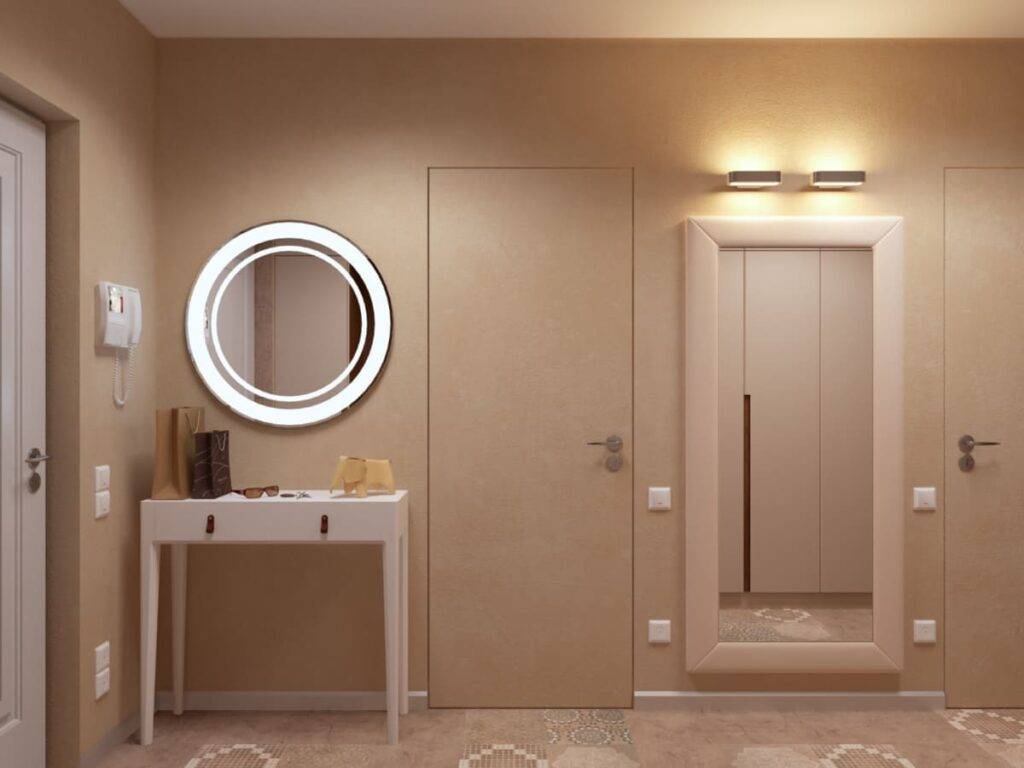 В большинстве случаев естественного света в прихожих нет, поэтому уместно использование люстр, и настенных осветительных приборов. Добавить света можно с помощью зеркал, которые будут прекрасно отражать свет люстр или светильника.