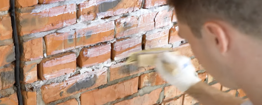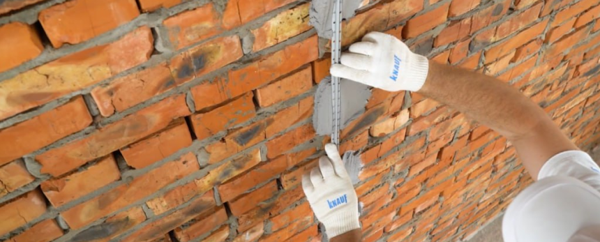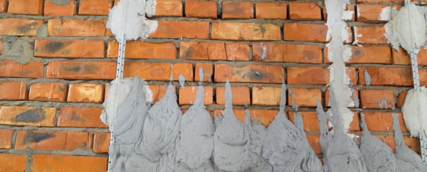 Очистите стену от наплывов и капель застывшего раствора, отслаивающихся элементов, хорошенько обметите от пыли.