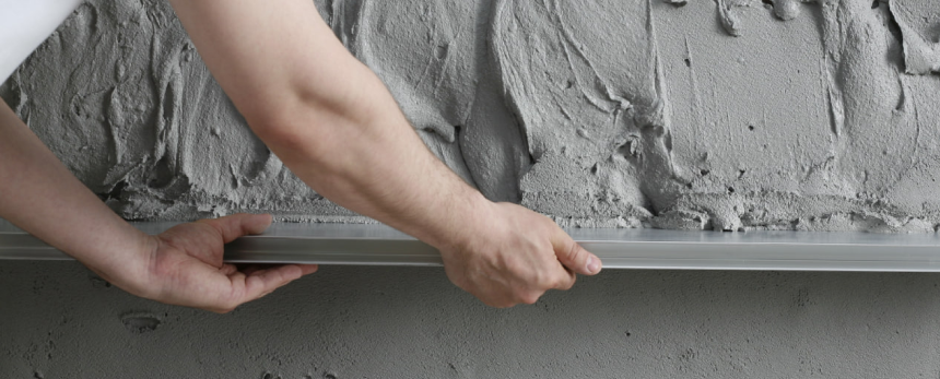 Примерно через 45-60 минут после затворения штукатурка начнёт схватываться. В это время нужно убрать небольшие неровности, которые остались после разравнивания правИлом. Этот этап называется «подрезка» и выполняется трапециевидным правИлом. Другими словами, именно теперь вы делаете стену плоской.