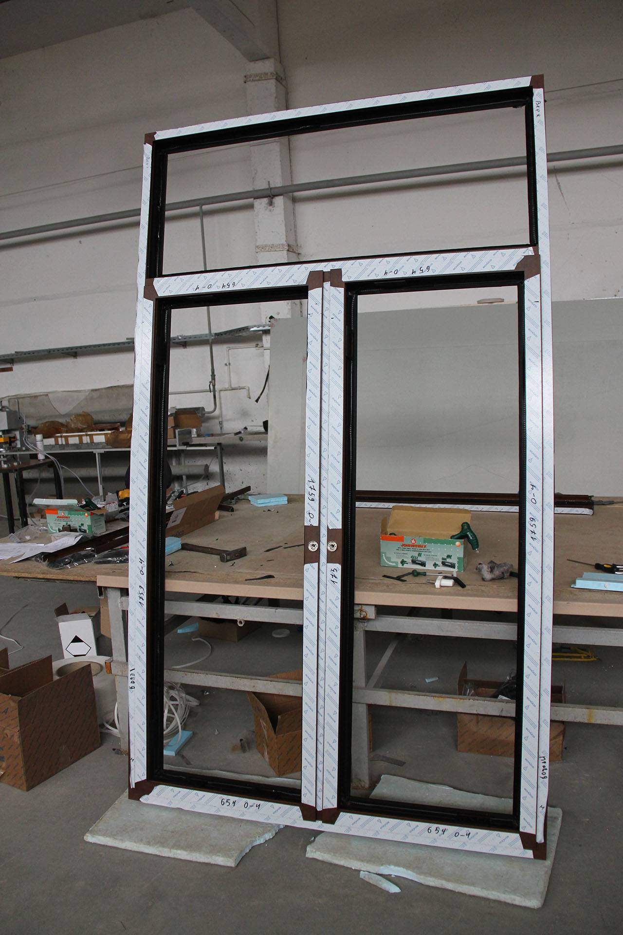 Толщина рамы в сечении 73,5 мм. Профиль усилен алюминиевыми накладками. Пятикамерный профиль с черными или серебристо-серыми уплотнителями – цвет зависит от желания клиента. Такой профиль часто заказывают для фасадного остекления.