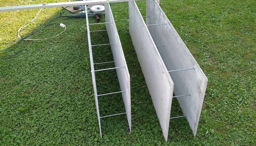 - Дополнительно соединить щиты поперечиной, проверив их вертикальность;