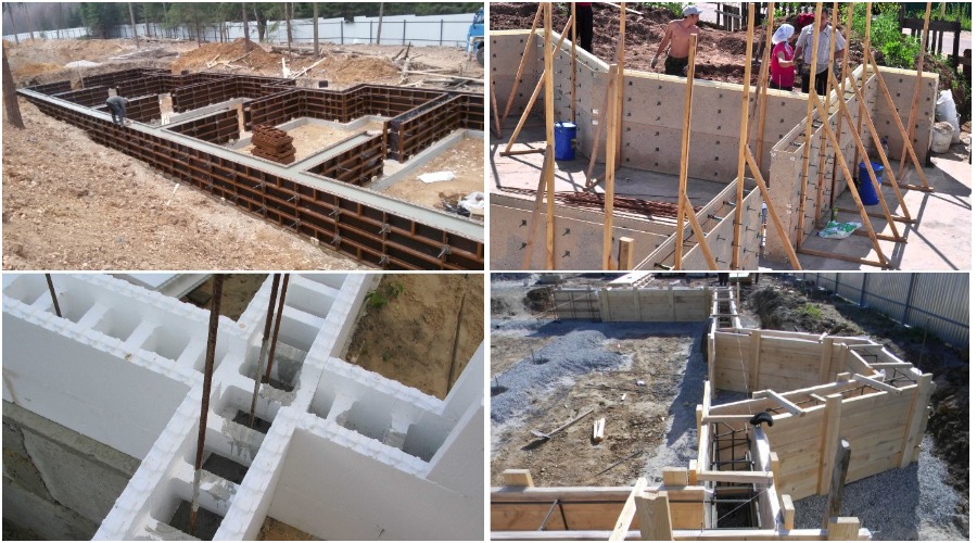 Для формирования фундамента применяют, как самостоятельно изготовленные опалубки, так и промышленные арматурно-опалубочные блоки, монтировать которые приходится при помощи кранов.