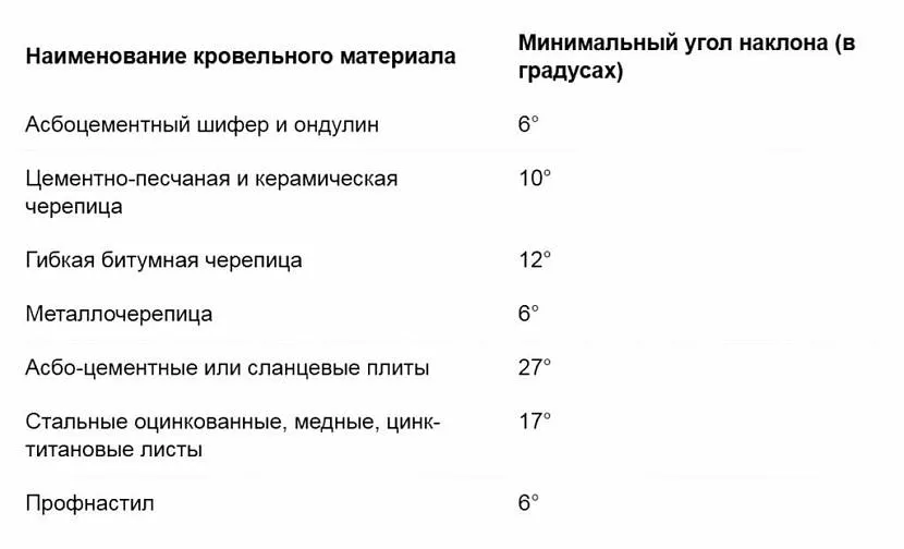 Минимальный угол уклона кровли Источник kak-sdelat-kryshu.ru