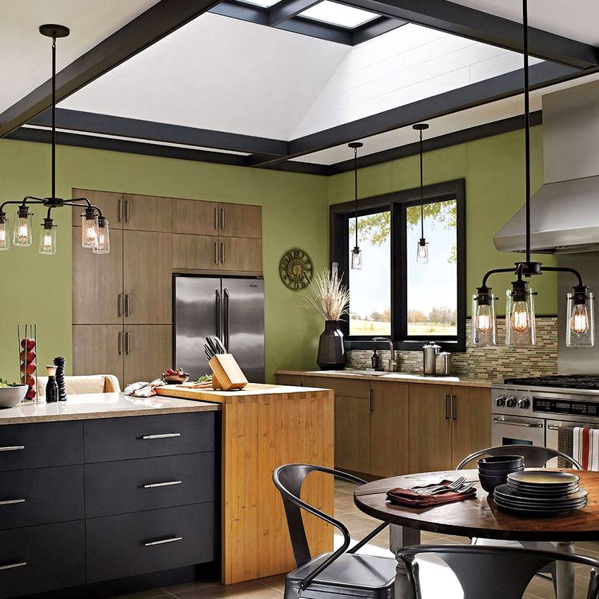 Кухня — помещение, в котором есть две главные зоны с разным назначением — рабочая зона для приготовления пищи и обеденная зона. Из разных целей к освещению кухни тоже предъявляются разные требования: рабочая зона должна иметь яркое освещение, позволяющее все хорошо видеть, а в столовой — более мягкое.