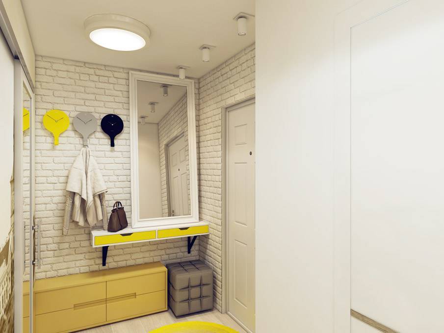 Здесь используют несколько типов освещения и разделяют пространство на функциональные участки. Рядом с входной дверью устанавливают основной световой источник, а для зоны со шкафом или зеркалом применяют локальную подсветку.