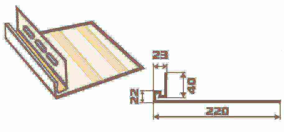 - J-образный профиль, применяемый для обрамления сайдинга на торцах фронтонов при наличии наклонного среза панелей и на вертикальных срезах, обустройства оконных и дверных проёмов, а также при необходимости выполнения замены наружного или внутреннего непрямого угла. Кроме того, используется для монтажа карнизных фасок, софитов и фасок для подшивки карнизных свесов.