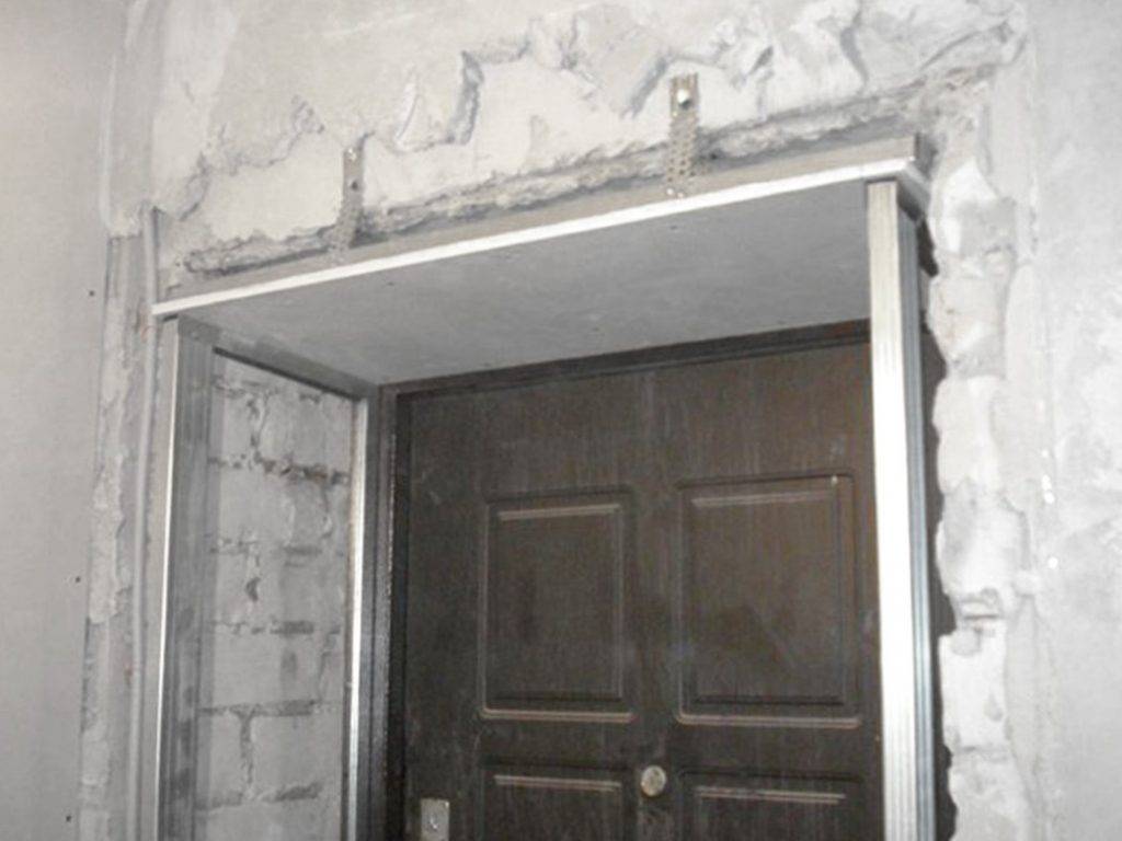 Каркасная обшивка подразумевает предварительный монтаж металлического (алюминиевого) или деревянного профиля по периметру дверного проема.