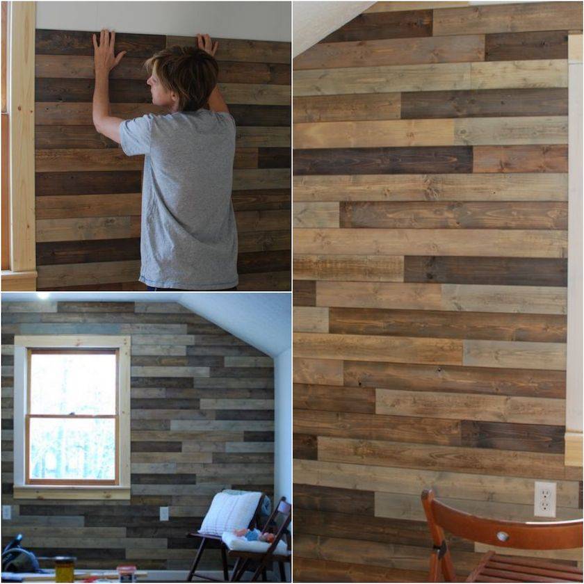 На стену ламели можно приклеить при помощи жидких гвоздей или специального двухкомпонентного клея. Этот способ позволяет использовать ламели различных размеров, комбинировать фактурой и цветовыми оттенками обшивки, добиваться оригинальности в интерьере.
