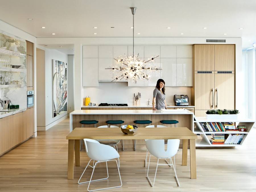 - Зонирование с помощью отделки. Отделите обеденную зону от рабочей с помощью разных по фактуре или даже цвету отделочных материалов. Даже небольшое по площади помещение будет выглядеть оригинально.