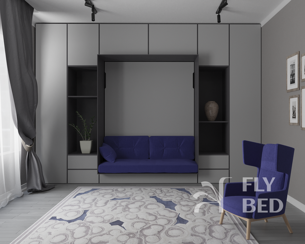 Откидная кровать с подъемным механизмом со шкафом в британском стиле