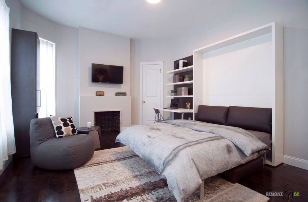 Среди всей встраиваемой мебели варианты выкатывания кровати изнутри шкафа являются самыми экономичными к рабочему пространству комнаты: