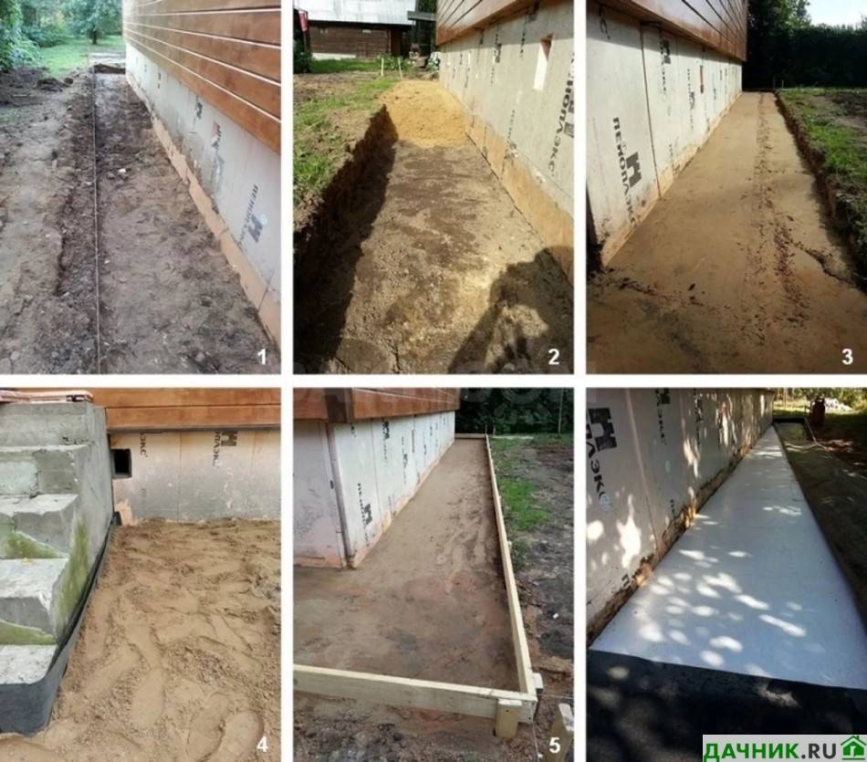 Устройство утеплённой полосы возле строения выполняют после завершения основных строительных работ.