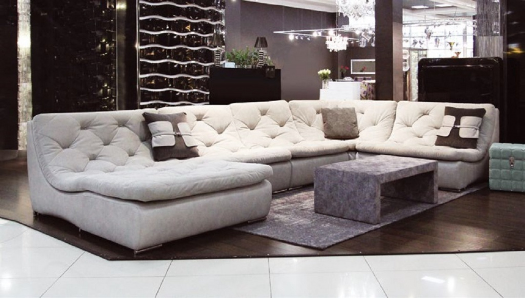 - модульные диваны, как правило, имеют немалые габариты в силу возможности трансформации в кровать или наличия ящиков. Такая мебель найдет применение в больших пространствах, таких, как гостиная.