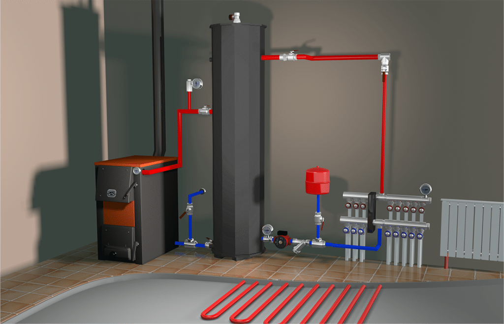 - Подключение и расчет буферной емкости к твердотопливному котлу
