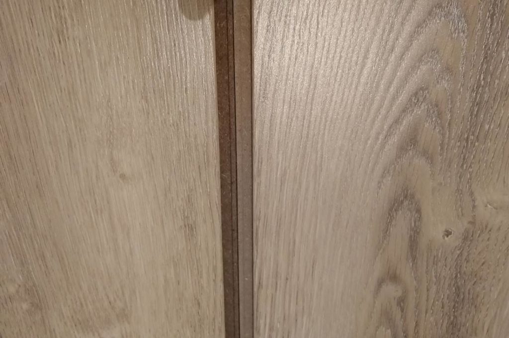 Вторая заминка всплыла на том самом проблемном месте, в дверном проеме со стороны коридора. Ламинат терся между собой и образовывался скрип, пришлось точечно на стык подкладывать обрезки подложки. Но характерный звук стал появляться в других местах, расположенных рядом.