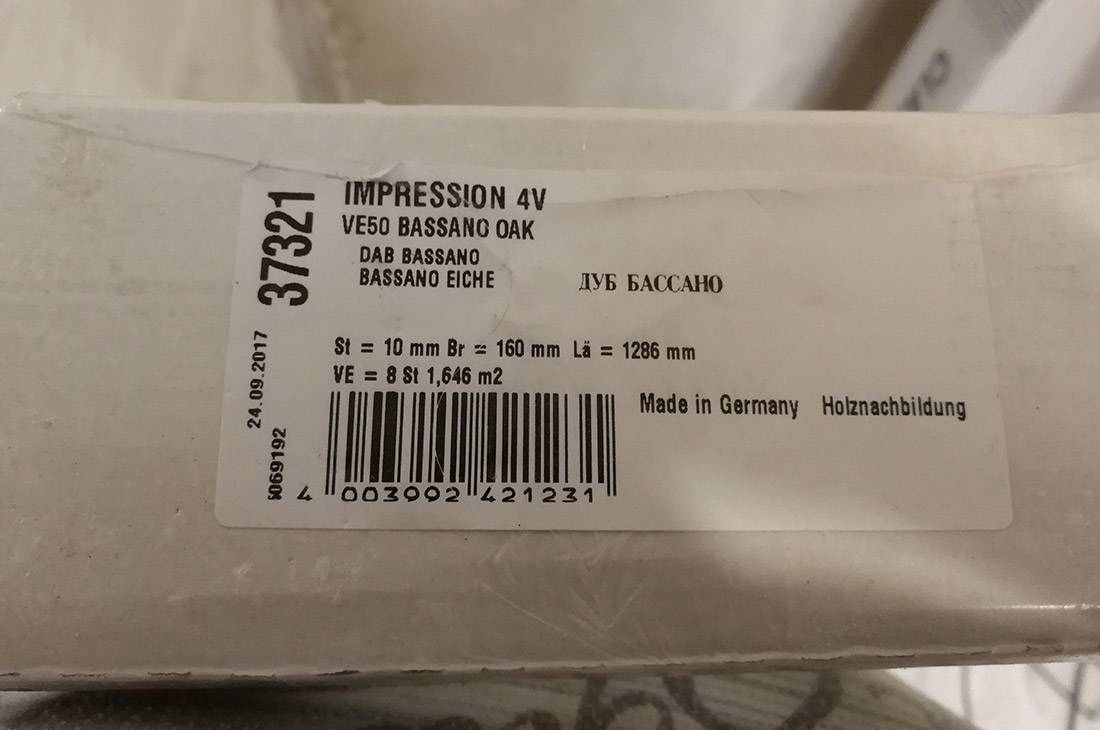 Извлеченная планка ламината Классен (Classen) имеет 10 мм толщину и V-образную окрашенную фаску. Производитель заявляет, что она ламинированная. На ближайшем заказе проверю и, если ошибся, исправлю…