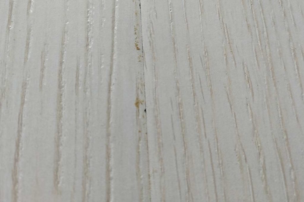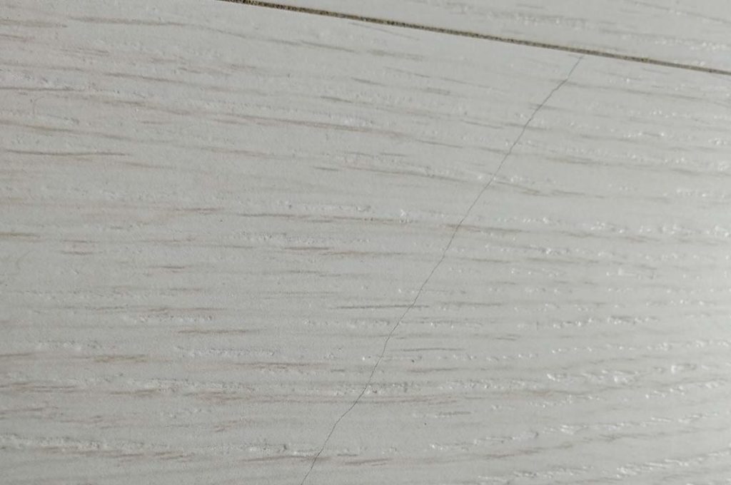 Второй ряд в первый заводить физически тяжеловато, сказывается толщина доски 12 мм и ширина 240 мм. Равномерно простучав по панелям для надлежащего соединения, местами обнаружил перепады высот по фаске. Это не то чтобы очень заметно, но присутствует. Так же были небольшие микросколы вдоль кромки. Но это проблема практически всех ламинированных недорогих полов белого цвета.