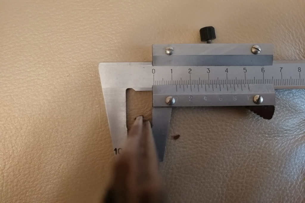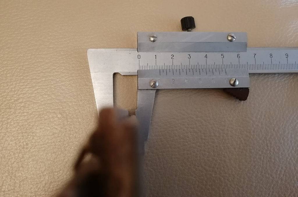 Через пару часов, вытащив обрезок доски из воды, тщательно проверил толщину в нескольких местах и вот, что показал измерительный прибор.